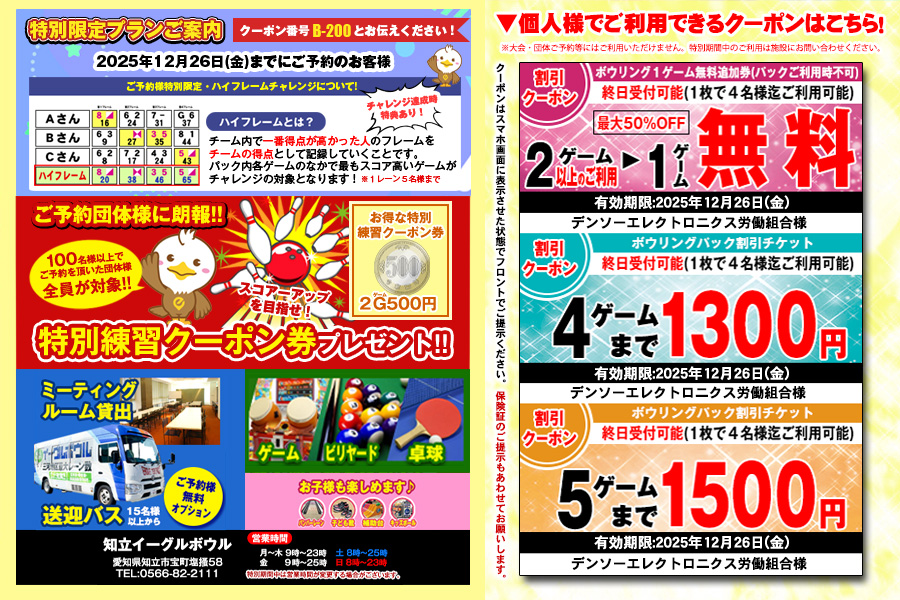 イーグルボウル | ゲーム料金 | ※こちらからクーポン表示 |